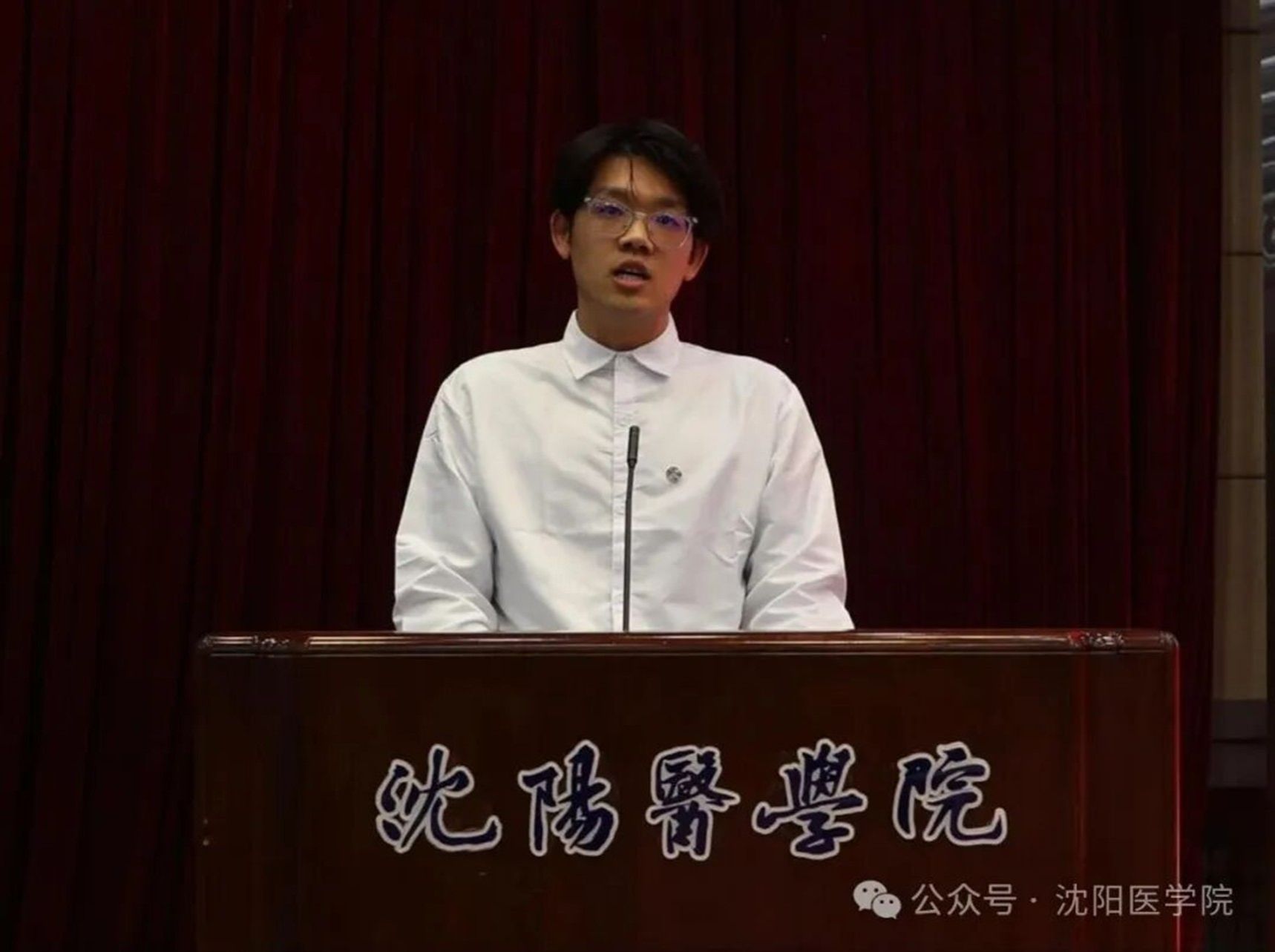 “沈医青年榜样”代表、第二临床医学院2022级朱耘锋同学畅谈了自己在科研与竞赛中勇于探索、挑战自我的经历,彰显了沈医青年敢于担当、追求卓越的青春风采。他们的发言真挚感人,充满了奋斗的激情与力量,为全体同学树立了生动的学习标杆。